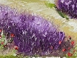 Dans chaque coup de pinceau, l'artiste traduit l'essence de ce paysage calme et envoûtant. Les lavandes, avec leurs teintes violettes et leur parfum délicat, sont représentées avec une précision minutieuse, ajoutant une dimension sensorielle à la peinture..